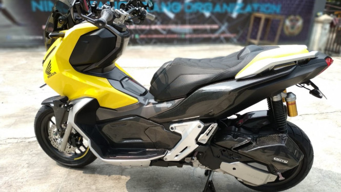 Modifikasi ADV 150 berkelir kuning hitam yang dipajang adalah garapan bengkel Witjaz Modizigner. Jika melihat wujudnya tidak terlalu banyak ubahan, hanya sekadar menambahkan aksesori aftermarket.