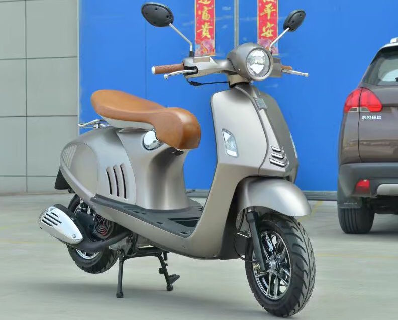 Skuter matik dengan tangki bensin 5 liter, ini juga dilengkapi dengan rem cakram pada bagian depan dan belakang. Motor yang tak diketahui mereknya ini ternyata cepat menarik minat pelanggan muda dan pelajar.