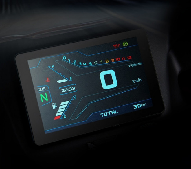 Panel meter (instrumen) full digital TFT, yang bisa menyajikan berbagai informasi. Adapun sistem knalpot menggunakan model under belly yang sporty.