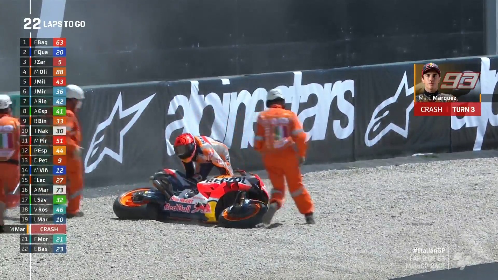 Malunya Marquez Kecelakaan di Awal Balapan MotoGP Italia