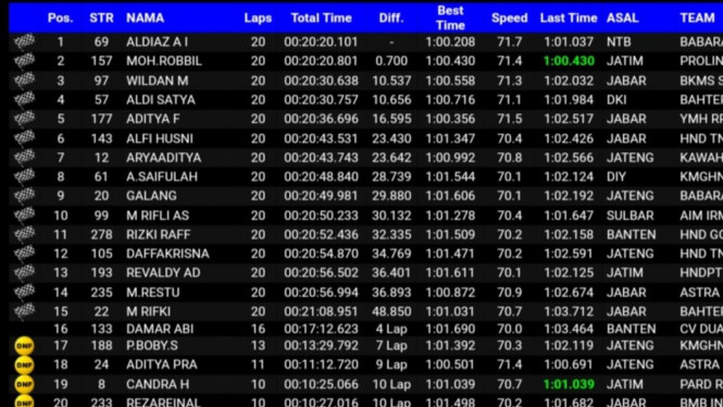 Hasil Lengkap Kelas Bebek 4 Tak 150cc Tune up Injection (Novice):