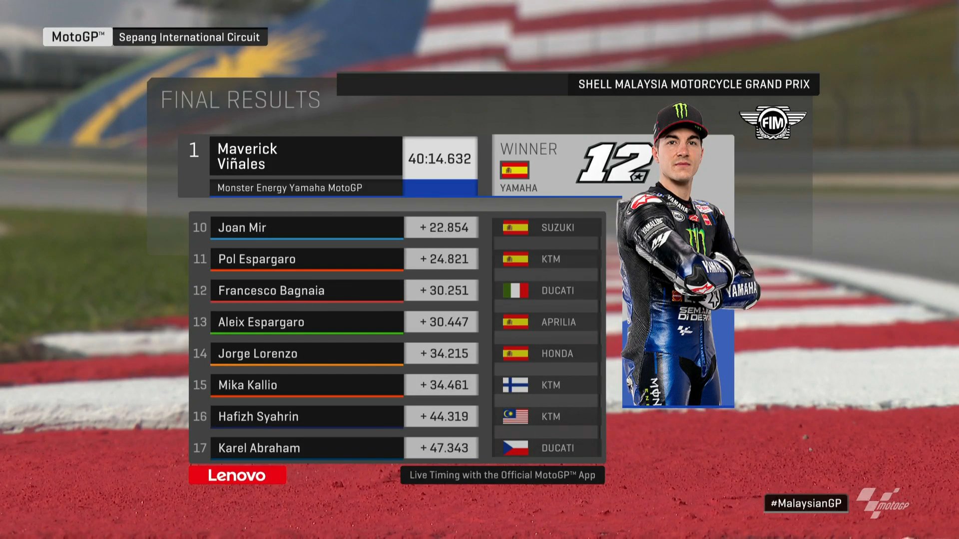 Berikut Hasil Lengkap MotoGP Malaysia 2019: