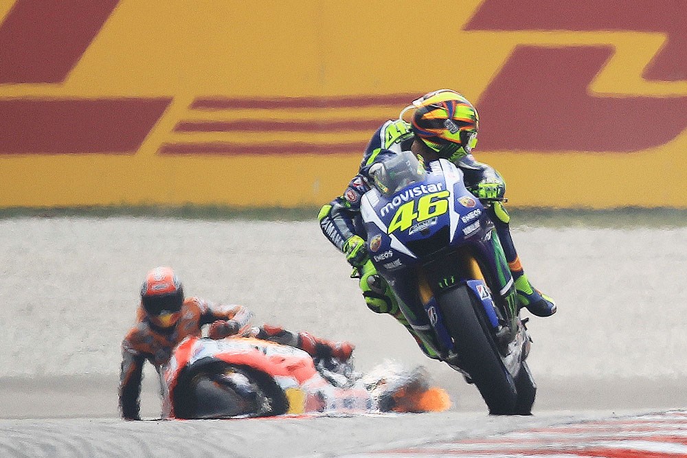 Kalimat yang dilontarkan pembalap berusia 40 tahun tersebut, memutar ingatan kita pada kejadian empat tahun lalu di sirkuit yang sama. Kala itu, Rossi yang tengah beradu cepat dengan Marc Marquez di posisi depan, harus terlibat crash setelah The Doctor mengayunkan kakinya ke motor Marquez hingga menyebabkan pembalap Spanyol itu tersungkur.